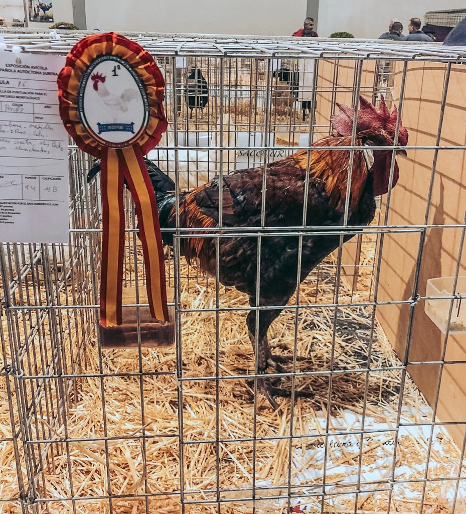 Ehkä ensi vuoden näyttelystä poistumme omat ankat kainalossa. Myynnissä oli strutsivauvakin ja kaksi strutsin munaa olisi voinut ostaa kolmellakympillä. Kukot olivat osallistuneet kauneuskilpailuun, ja monen häkissä komeilikin jonkin sortin ruusuke.